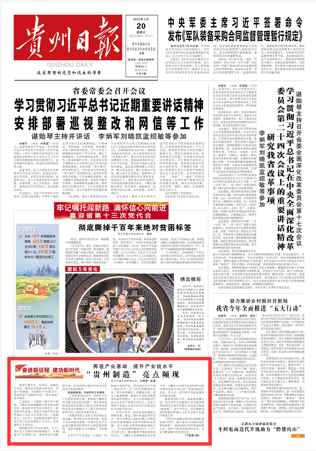 貴州省以數(shù)字化、網(wǎng)絡(luò)化、智能化為方向,強(qiáng)化企業(yè)創(chuàng)新主體地位,再造產(chǎn)業(yè)基礎(chǔ),全面提升產(chǎn)業(yè)鏈水平,推進(jìn)傳統(tǒng)產(chǎn)業(yè)提質(zhì)升級,“貴州制造”亮點頻現(xiàn)——