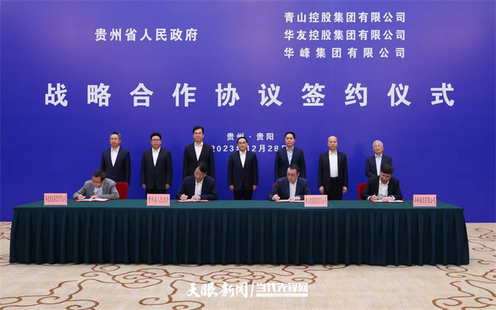 我省與青山控股集團(tuán)、華友控股集團(tuán)、華峰集團(tuán)簽署戰(zhàn)略合作協(xié)議。林民 攝