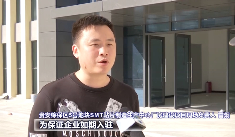 貴安綜保區(qū)5號地塊SMT貼片制造生產(chǎn)中心廠房建設(shè)現(xiàn)場負責(zé)人 雷炯:為確保企業(yè)如期入住,我們在確保安全的情況下保證質(zhì)量,先后組織了300余名工人參與了兩棟廠房的項目建設(shè)任務(wù),目前我們計劃明年1月份能夠驗收完成,達到企業(yè)入駐使用條件。