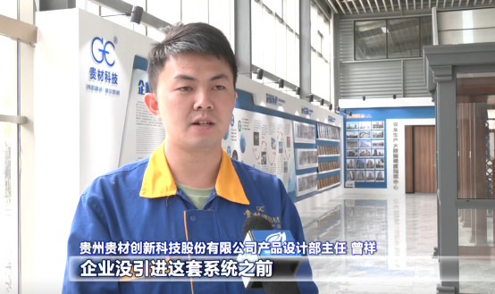 貴州貴材創(chuàng)新科技股份有限公司產(chǎn)品設(shè)計(jì)部主任 曾祥:我們沒(méi)引進(jìn)這套系統(tǒng)之前,生產(chǎn)系統(tǒng)比較混亂,投入的人力物力也比較大,并且給客戶交貨也比較晚,特別耽誤時(shí)間周期,當(dāng)企業(yè)引進(jìn)了這套系統(tǒng)之后,生產(chǎn)效率得到很大的提高,給客戶交貨的時(shí)間也提升了很多,幫助企業(yè)從以前幾千萬(wàn)元的產(chǎn)值提升到了7.5億元的年產(chǎn)值。