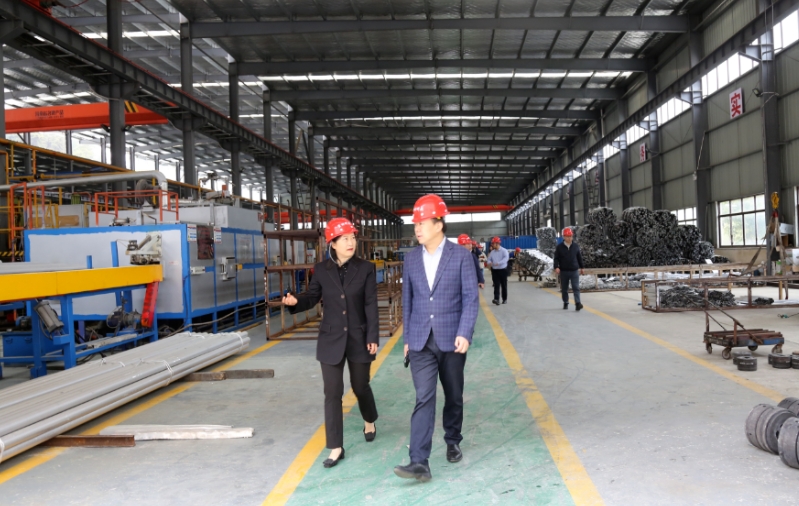 李國(guó)強(qiáng)一行在貴材科技公司展示中心聽(tīng)取關(guān)于企業(yè)文化、發(fā)展歷程、生產(chǎn)體系、工程案例等內(nèi)容介紹,進(jìn)入擠壓車間、模具車間、氧化電泳車間、技術(shù)中心等地,詳細(xì)了解工業(yè)鋁產(chǎn)品研發(fā)、設(shè)計(jì)、生產(chǎn)、銷售等各環(huán)節(jié)工作,實(shí)地查看立式粉末噴涂等生產(chǎn)線以及鋁合金家裝、門窗幕墻、建筑鋁膜板、鋁基新材料等主營(yíng)產(chǎn)品。隨后雙方召開(kāi)座談交流會(huì),就市場(chǎng)開(kāi)拓、技術(shù)研發(fā)、產(chǎn)品供銷等核心點(diǎn)進(jìn)行交流,圍繞合作方向和合作內(nèi)容開(kāi)展深入探討。
